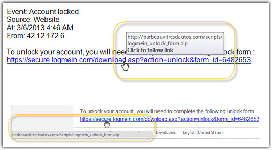 - Valid links in our emails most commonly point to logmein.com, logmeinrescue.com, or goto.com. If the destination is different, the message is most likely fake.