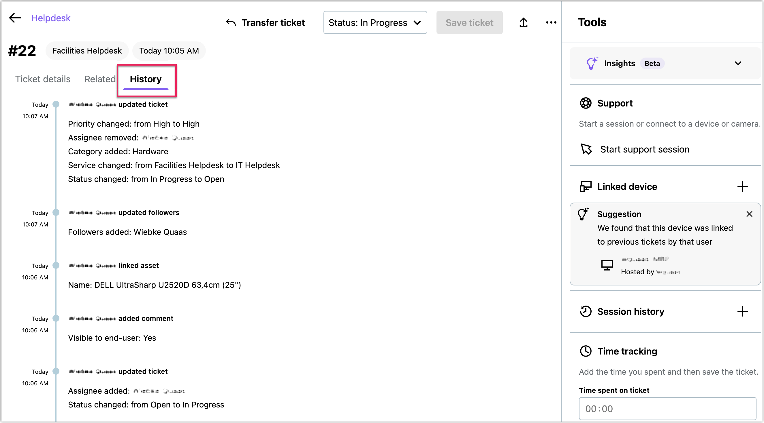 Verfolgen Sie die Chronik des Helpdesk tickets