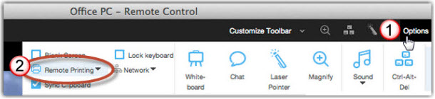 - Quando prendi il controllo remoto di un host, nella barra degli strumenti Controllo remoto, seleziona Opzioni.