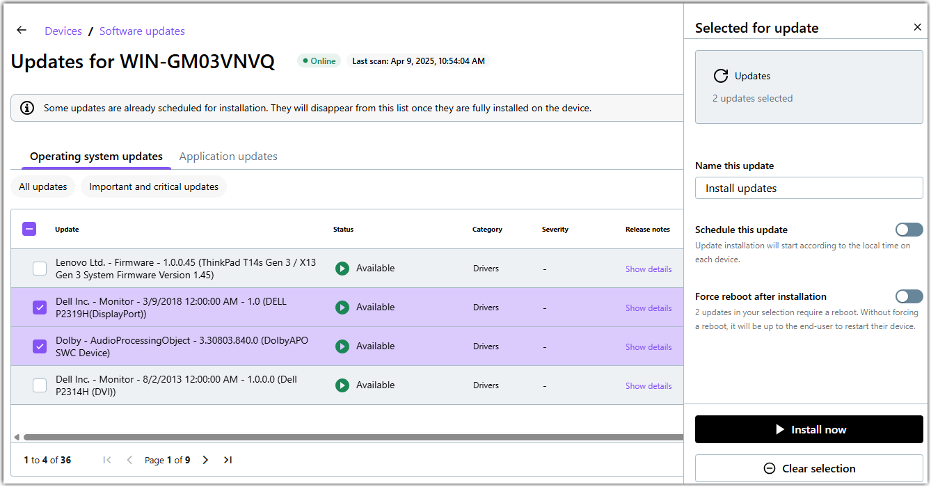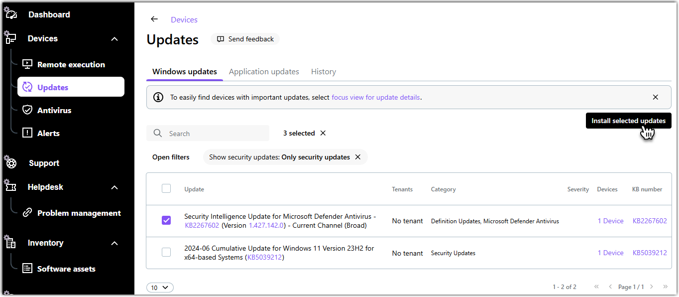 You can see all Windows and app patches that are applicable to your devices. You can even filter for Windows security patches if those are your top concern.