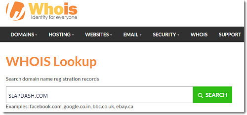 Als u niet weet wie uw domein host, is er een eenvoudige methode om daar achter te komen. Het volgende voorbeeld maakt gebruik van de onlineprogrammawebsite Whois.