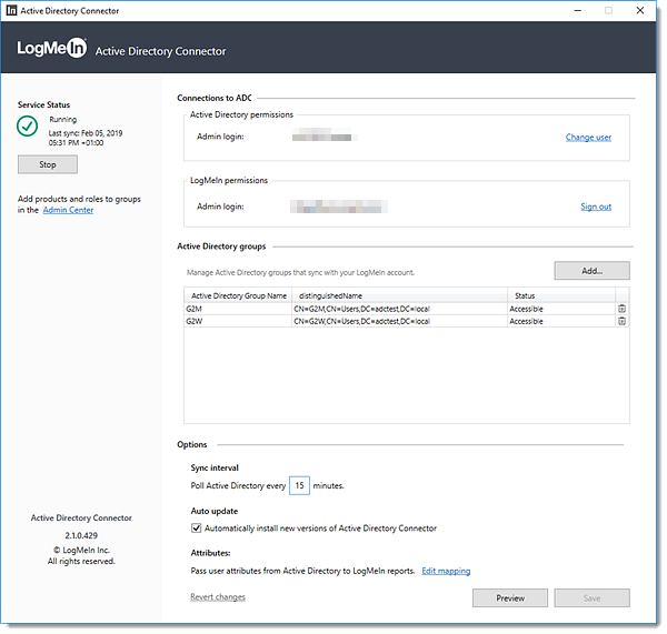 Na installatie en configuratie kun je de Active Directory Connector service starten.