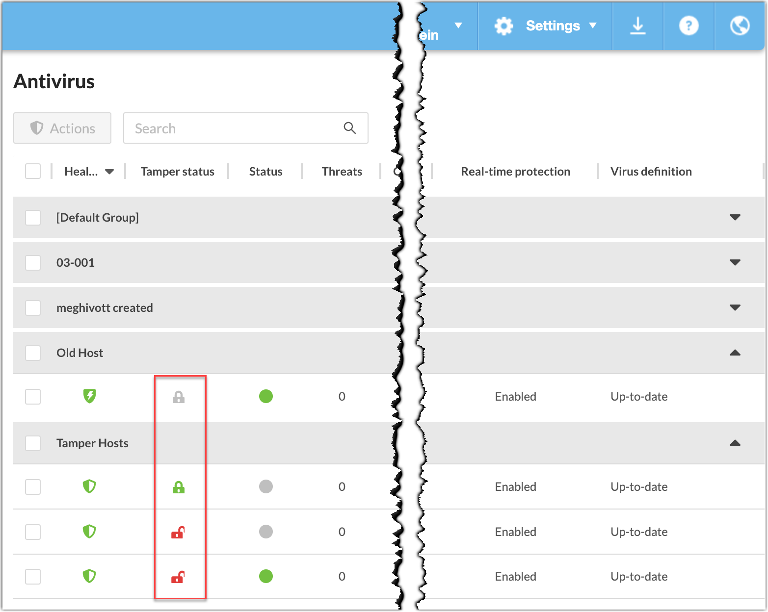 Note: For those computers that do not have the latest host version installed, Tamper Protection status is always unknown.