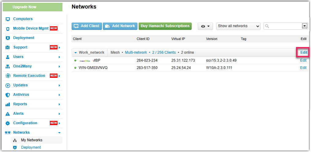 O Multi-rede a opção de assinatura é aplicada em toda a conta conta, permitindo um número ilimitado de redes com até 256 membros por rede. Com o Multi-Network ainda está sujeito ao limite de 256 clientes por conta. O número de clientes permitidos no nível da conta é independente do número de membros por rede. Isso significa que você pode ter mais muito mais membros em suas redes do que clientes conectado à sua conta.