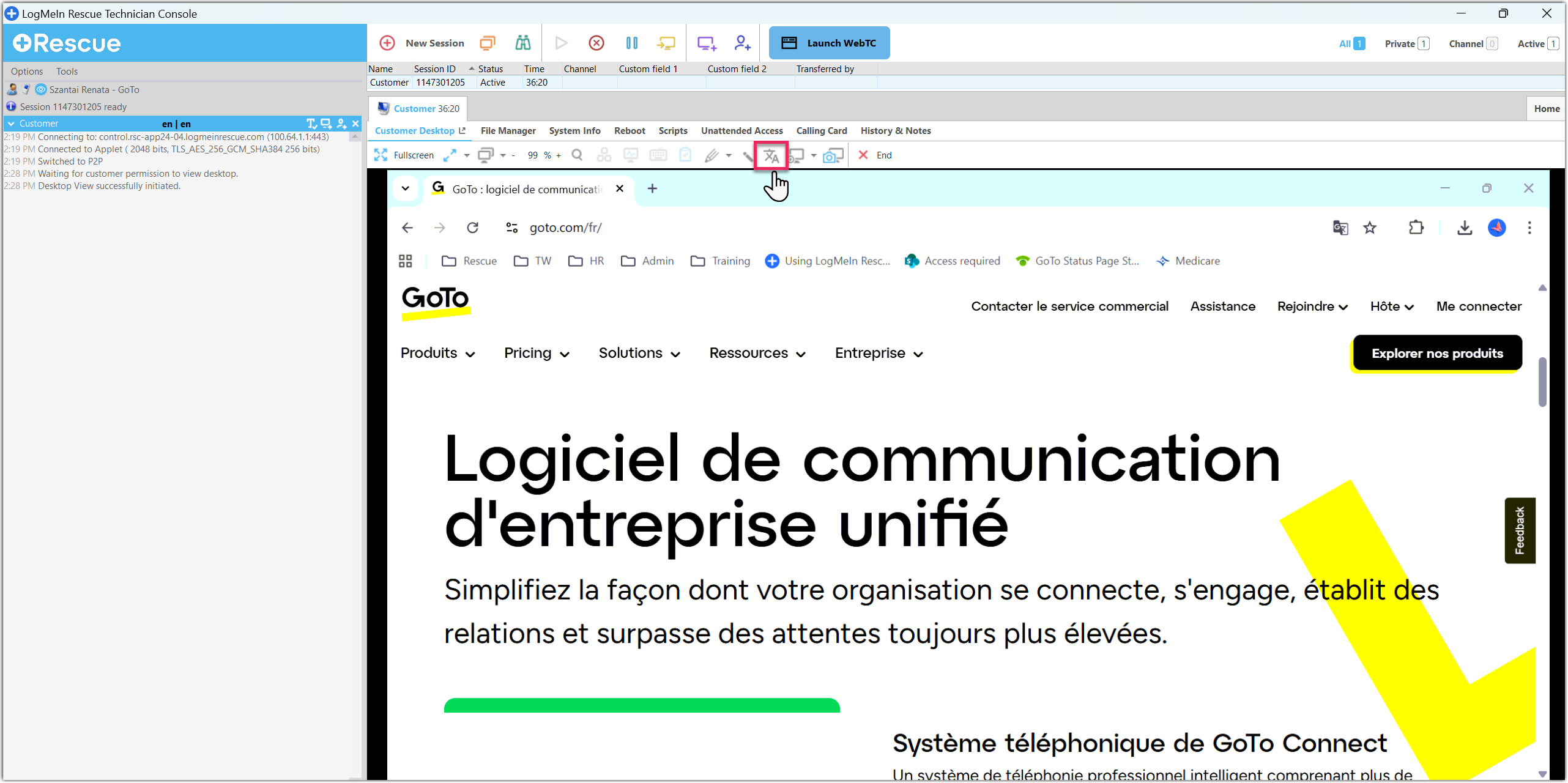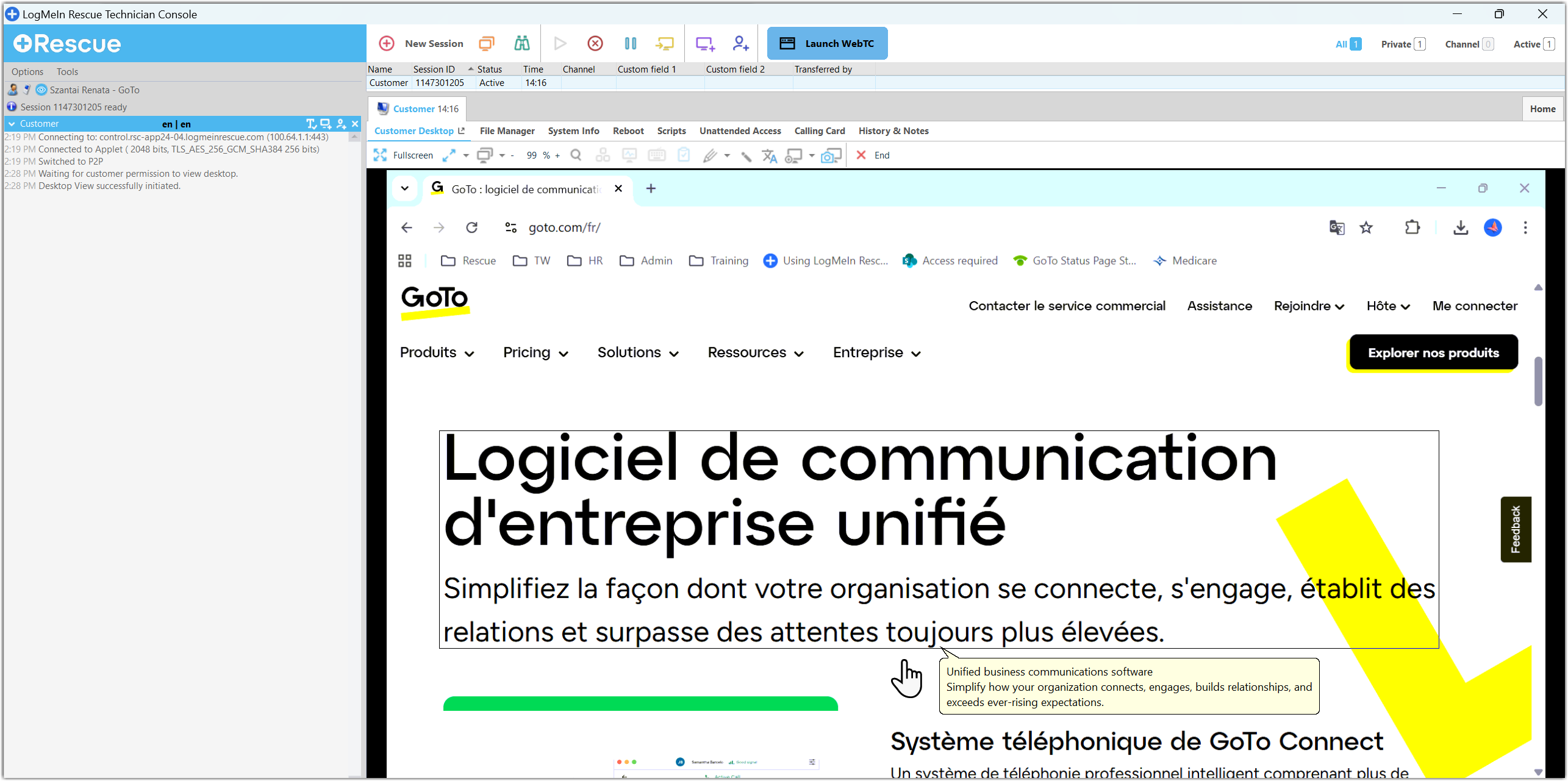 - When the connection is established with the end-user, select Launch Remote Control Session or Launch Desktop Viewing Session.