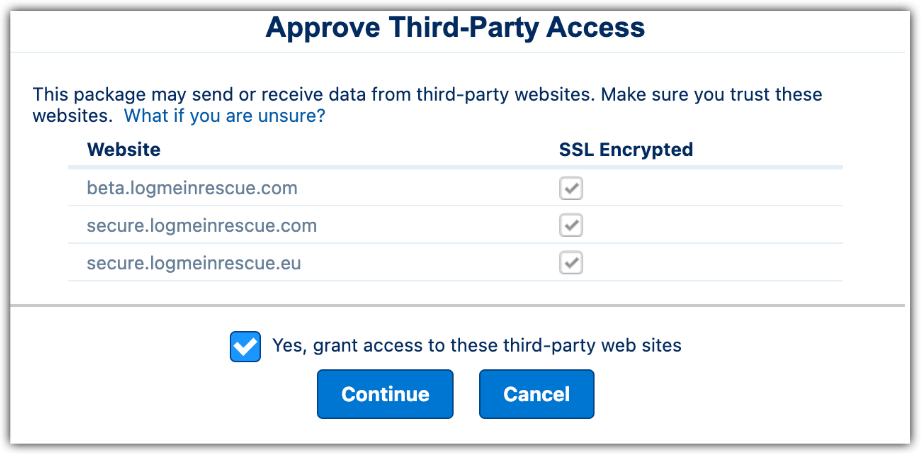 Results: A confirmation email is sent about your request and a LogMeIn Rescue tab is added to your Salesforce homepage. LogMeIn Rescue is now installed.