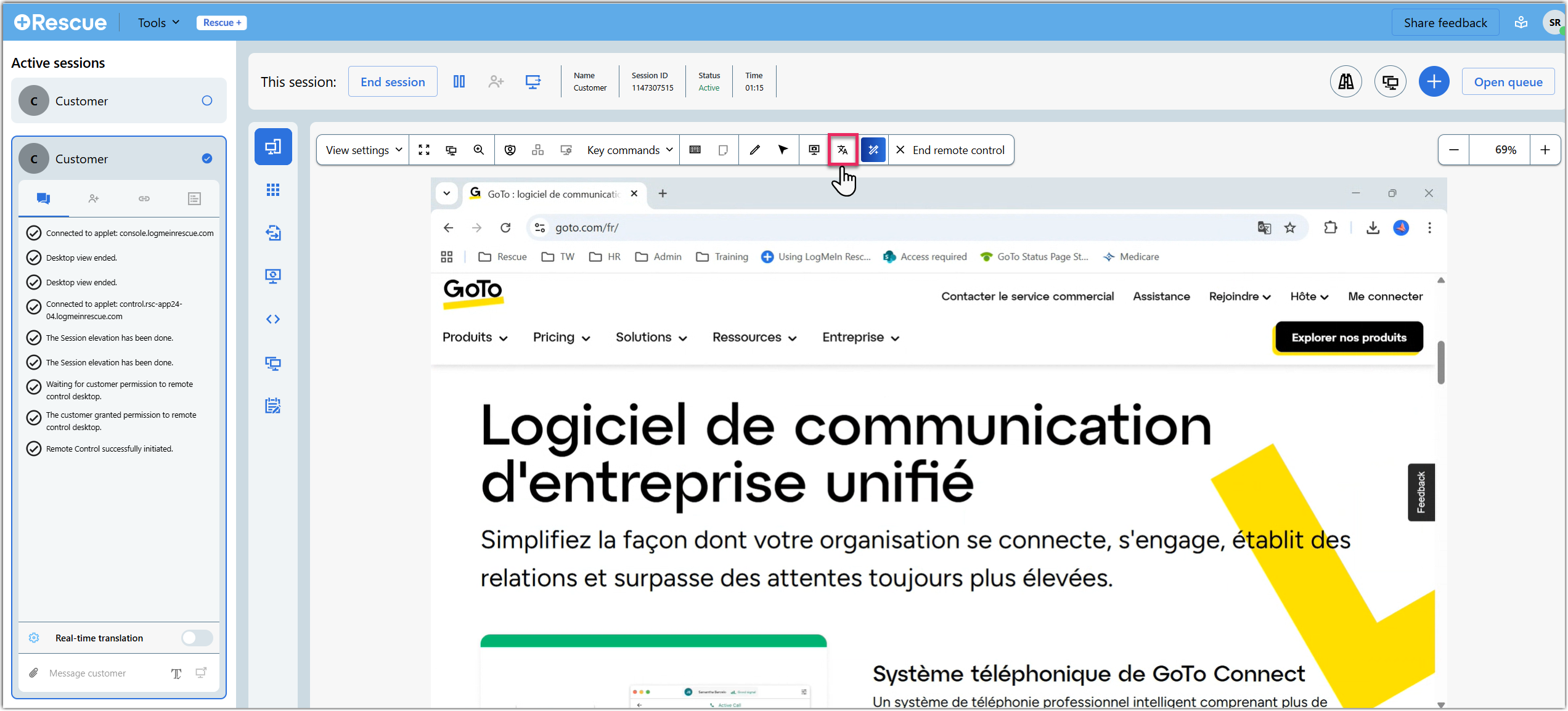 Follow this procedure to enable real-time translations of on-screen text during a support session, and provide assistance to users regardless of their language.