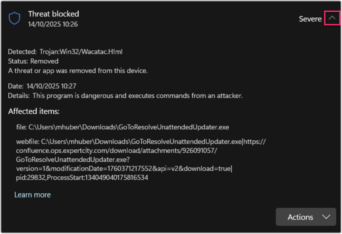 Download the LogMeIn Resolve installer blocked by Microsoft Defender